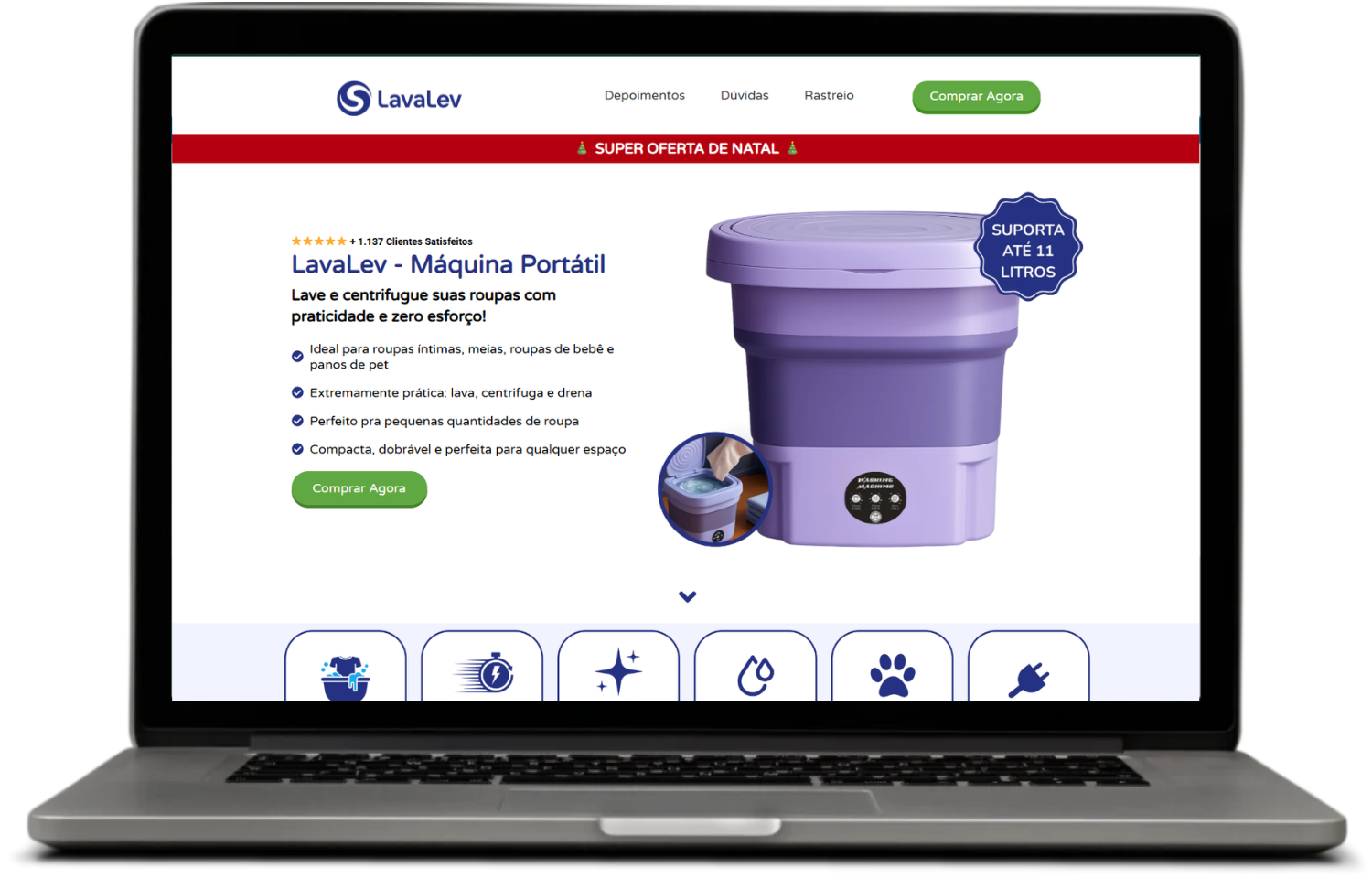 Sim! A LavaLev possui função de lavagem + cesto centrifugador para remover o excesso de água rapidamente.